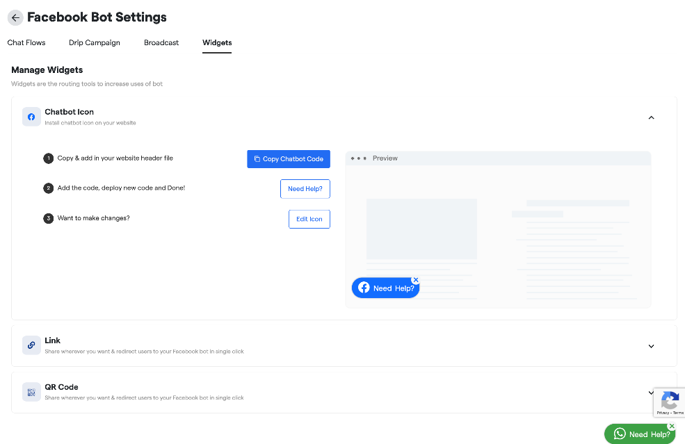 <figure><img src="https://4232256460-files.gitbook.io/~/files/v0/b/gitbook-x-prod.appspot.com/o/spaces%2FVvtyE4WvBgtMgZ0jzrdw%2Fuploads%2FDSaXoazn8PgmFokhWw01%2FS11.png?alt=media&#x26;token=03cb20b6-6c99-4ea8-82bf-68c811740c2e" alt=""><figcaption><p>Facebook Widgets | Source <a href="https://app.skoobot.com/authentication">SkooBot</a></p></figcaption></figure>