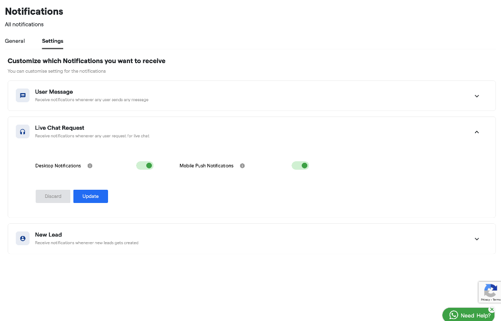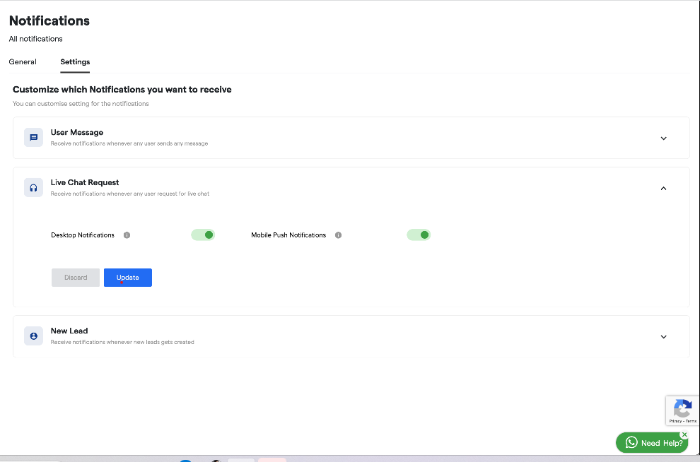 Customer & Live chat agents can now set their Mobile and desktop notifications settings from the account sections. Users will received their Notification Accordingly.