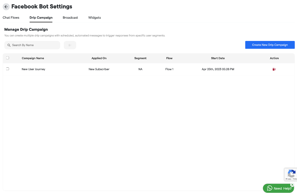 Users will be able to create Facebook drip campaigns which will allow them to create the journey of messages for the new subscribers and segmented users.&#x20;